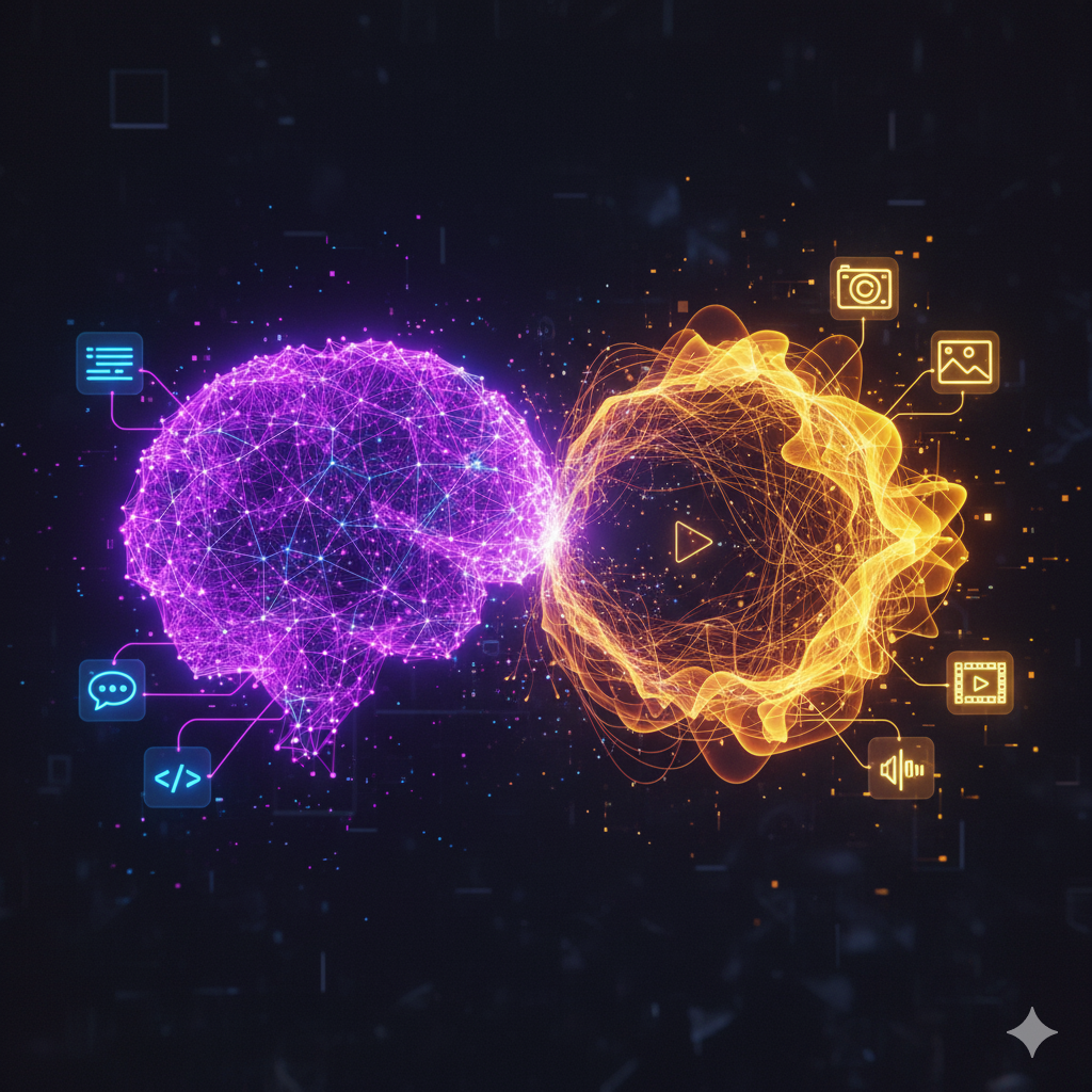 LLM이 언어에 특화된 전문가라면, 멀티모달 AI는 한 단계 더 진화한 형태라고 볼 수 있어요. '멀티(Multi)'와 '모달(Modal, 양식)'의 합성어처럼, 여러 가지 데이터를 동시에 이해하고 처리하는 기술입니다.